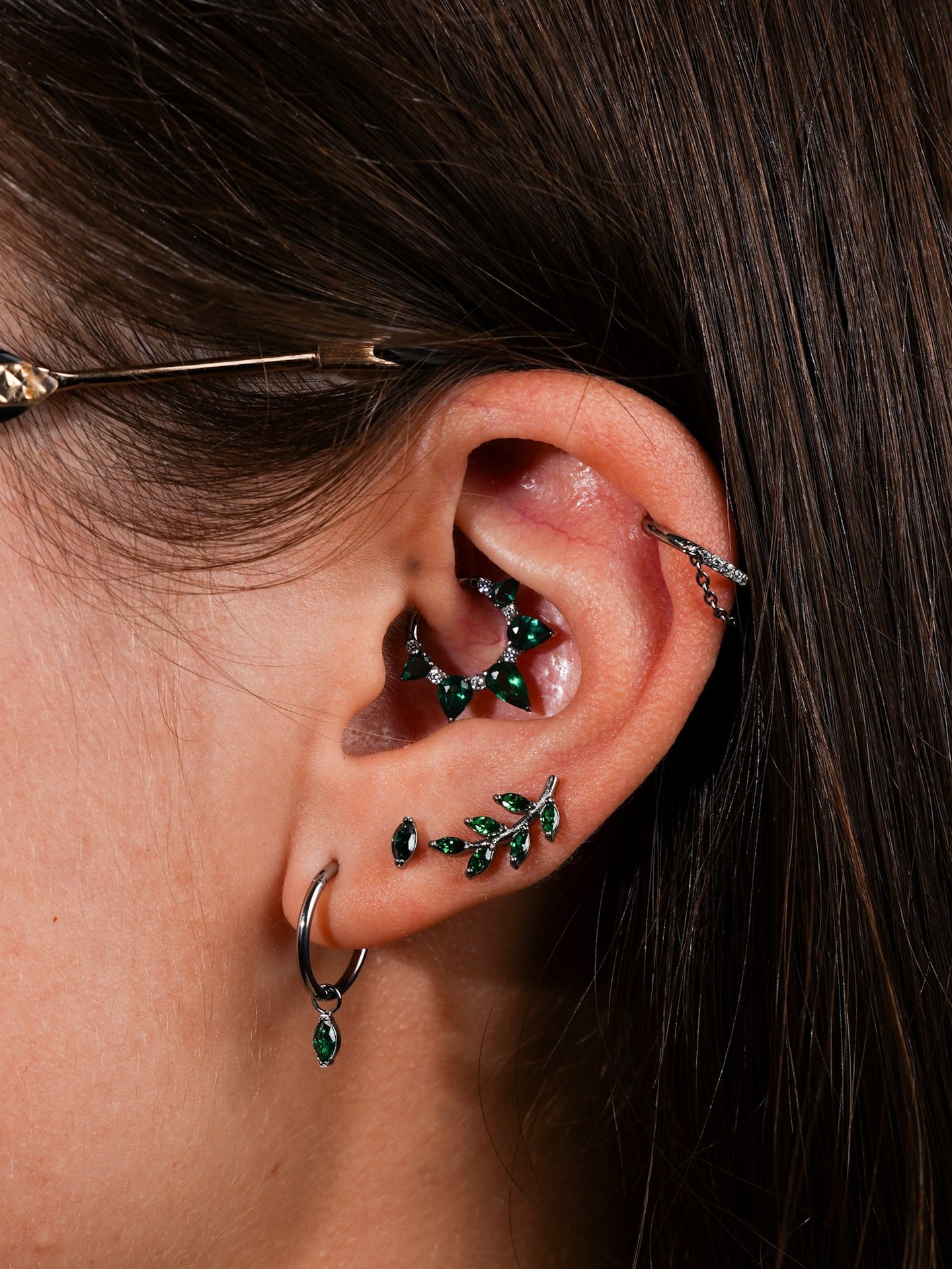 Daith → Cartilage interne en forme de pli, piercing audacieux.
