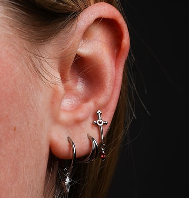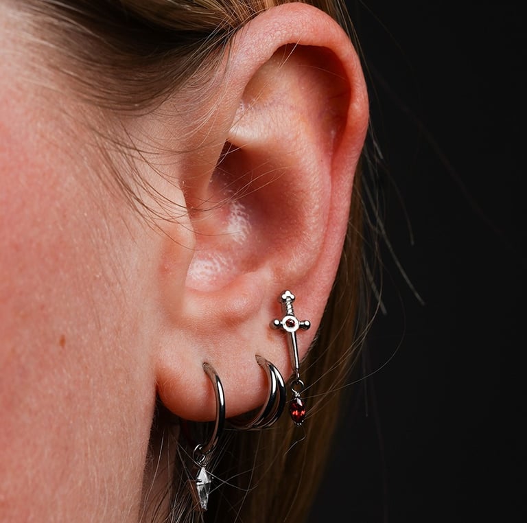 L’acier chirurgical (316L ou équivalent) reste utilisé dans de nombreux piercings, notamment après cicatrisation. Il est robuste et souvent plus accessible. Mais il contient souvent du nickel — et parfois, selon l’alliage et la finition, des traces peuvent subsister. On ne veut pas effrayer, mais être transparent : c’est pourquoi le titane chirurgical est souvent préféré dès la pose. Le titane procure une tolérance plus douce, notamment en phase de cicatrisation, car les tissus sont moins sollicités.